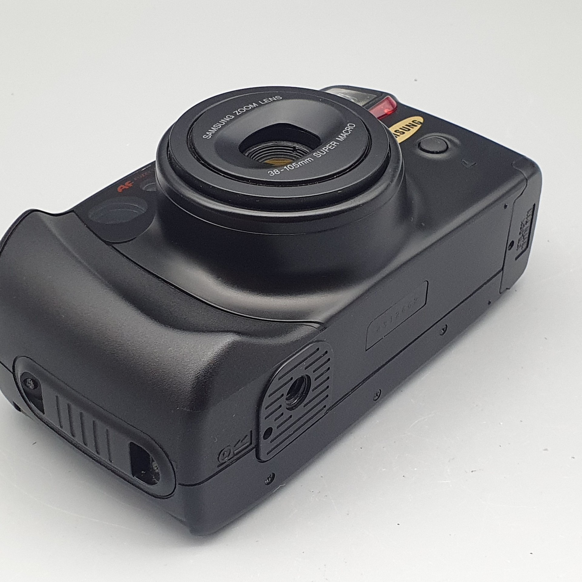 플라스틱 곡선형 디자인은 당시 국산 카메라의 특징을 잘 보여주고,