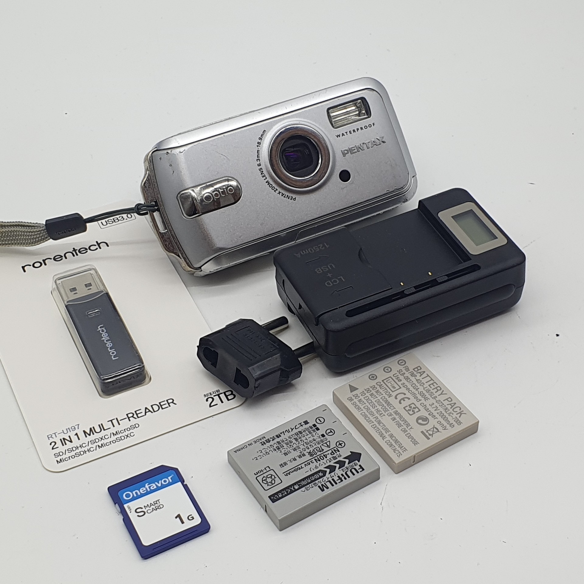 ▼ 펜탁스 optio w20 메탈릭 실버⌚ + 배터리 2개 (품번_AA853)