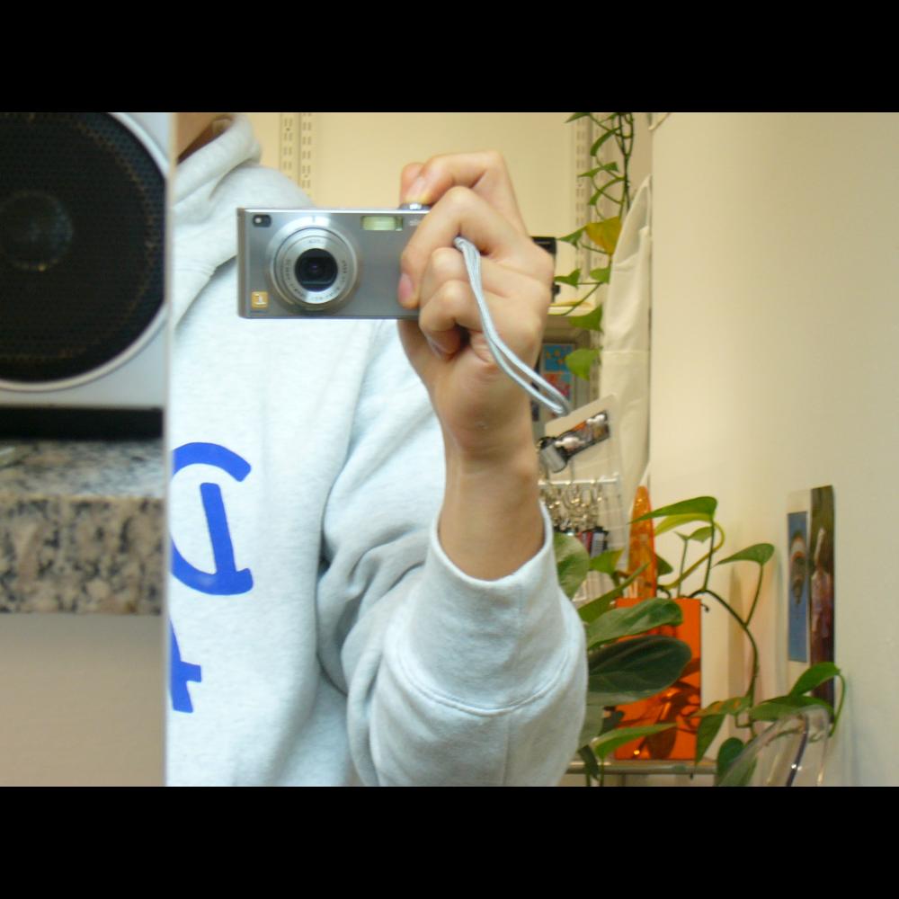 손바닥 안에 쏙 들어오는 크기와 부드러운 금속 질감이 인상적인 빈티지 디카입니다. ✨